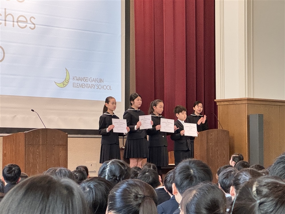朝の礼拝の後、スピーチコンテストの表彰式を行いました。