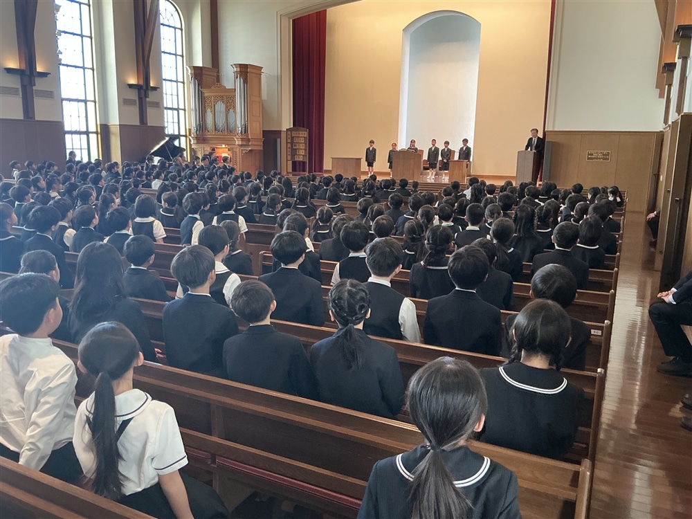 2026年度の初等部が始動しました。桜も咲く気持ちのよい春の日、新任の教員と転入生を迎えて2026年度の始業礼拝をささげることができました。関西学院に与えられた新しい友との出会いに感謝いたします。教室にいる1年生もオンラインで一緒に礼拝がささげられ、聖書と祈りと賛美を通して初等部が一つとなって年度が始まりました。今日出合ったクラスの友達、そして担任の先生も神様が一人ひとりに与えてくださった大切な存在です。そのことに感謝の想いをもって歩み始めたいと思います。
